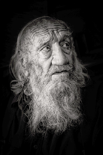 To begin with, Rockey has a striking physical presence. His face could serve as a model for an Albrecht Durer character study or an illustration from one of J.R.R. Tolkein's Middle Earth books. His balding dome, his eyes -- intermittently brooding and merry -- and his magnificent, Great Dane nose are framed by gray, shoulder-length hair and a wavy, chest-length beard that enthusiastically furthers the cause where the locks leave off.