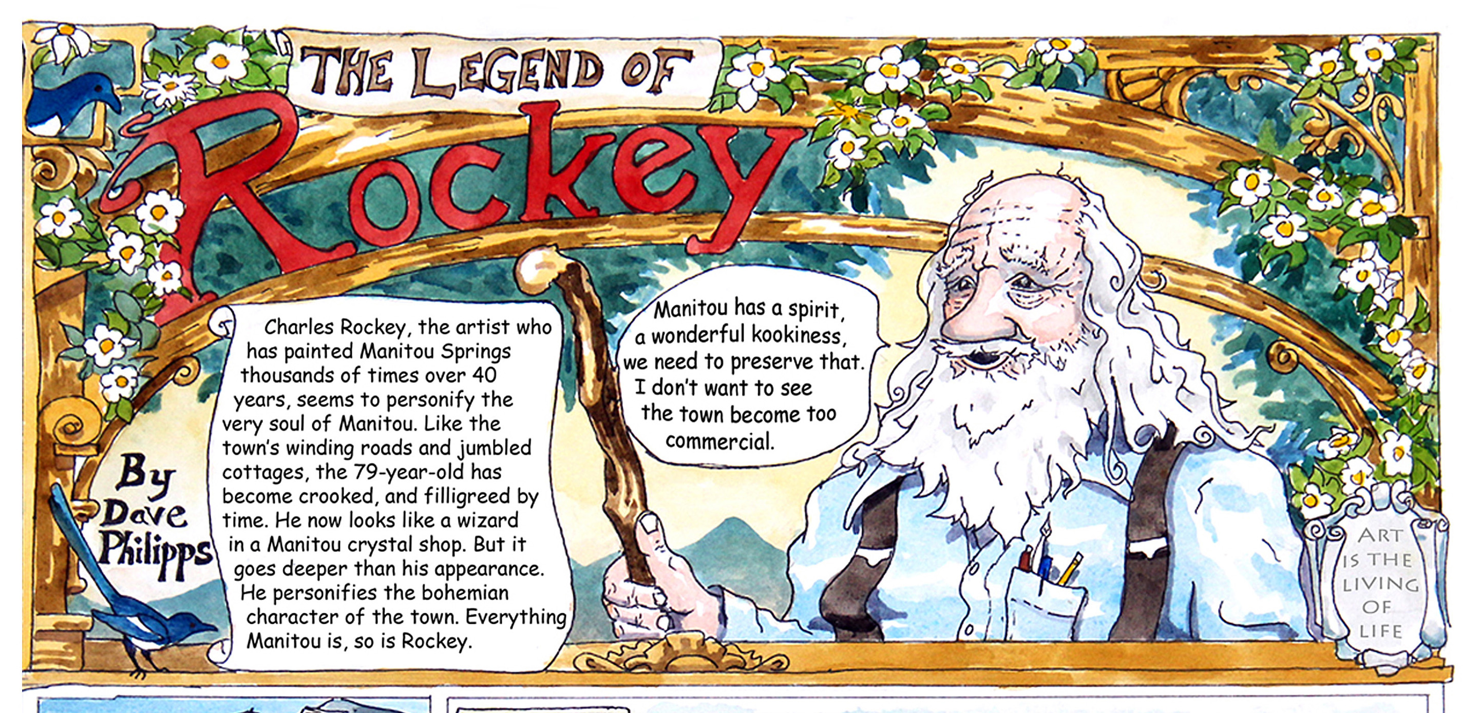 As such, Rockey and Manitou are perfectly matched. It's as hard to imagine Rockey separately from Manitou Springs as it is Paul Gaugin from Tahiti, Robert Frost from New Hampshire, Henry David Thoreau from Concord, Georgia O'Keeffe from Ghost Ranch or Andrew Wyeth from Maine. If anybody is a Manitou symbol and fixture, it's Rockey.